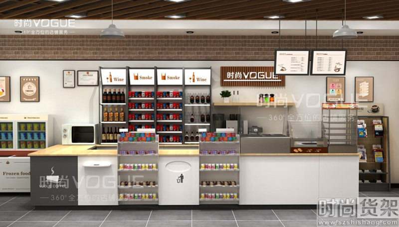 以上只是【時尚貨架】列出來的常用收銀臺組合形式,當然顧客可以根據需求來搭配不同長度和不同數量的小前架,更加合理的利用收銀區的空間。