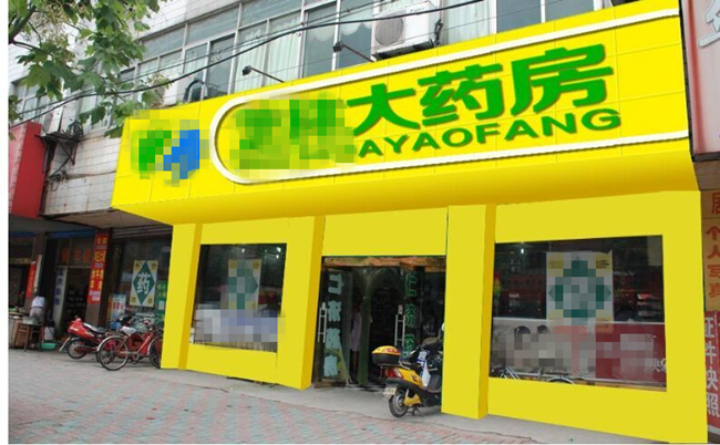 藥店屬于一個相對嚴肅的場所,門頭過于鮮艷不符合醫藥產品本身的形象,會給顧客一種十分不專業的感覺。并且這種明亮鮮艷的顏色對視覺的沖擊太強烈,大面積布置容易引起顧客的不適。