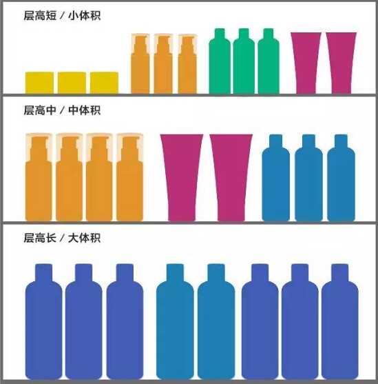 超市貨架上層擺放小體積商品;中層擺放常規體積商品;下層則擺放大體積商品,按照這種擺放方式,能讓商品展示效果更井然有序,方便顧客按需選購。