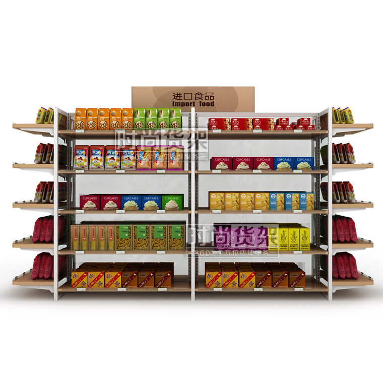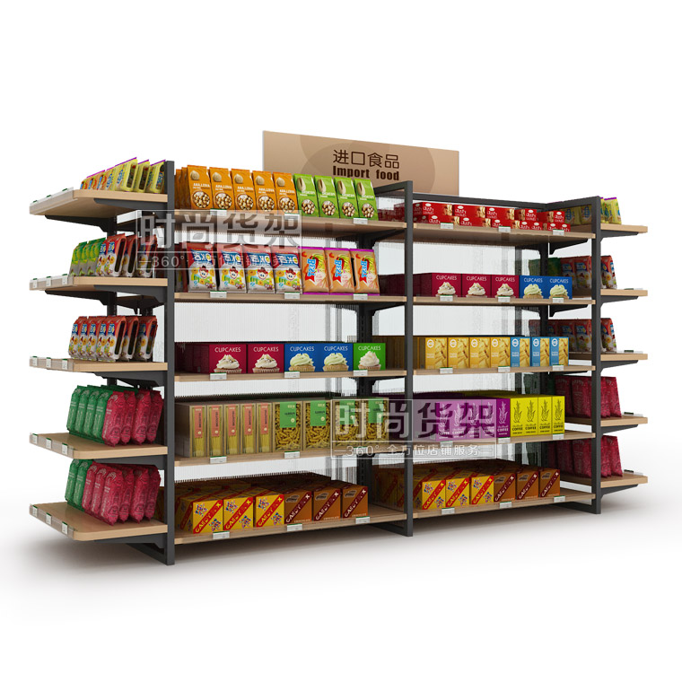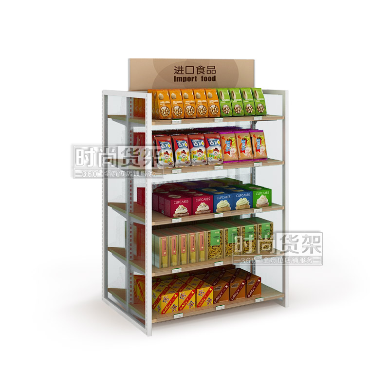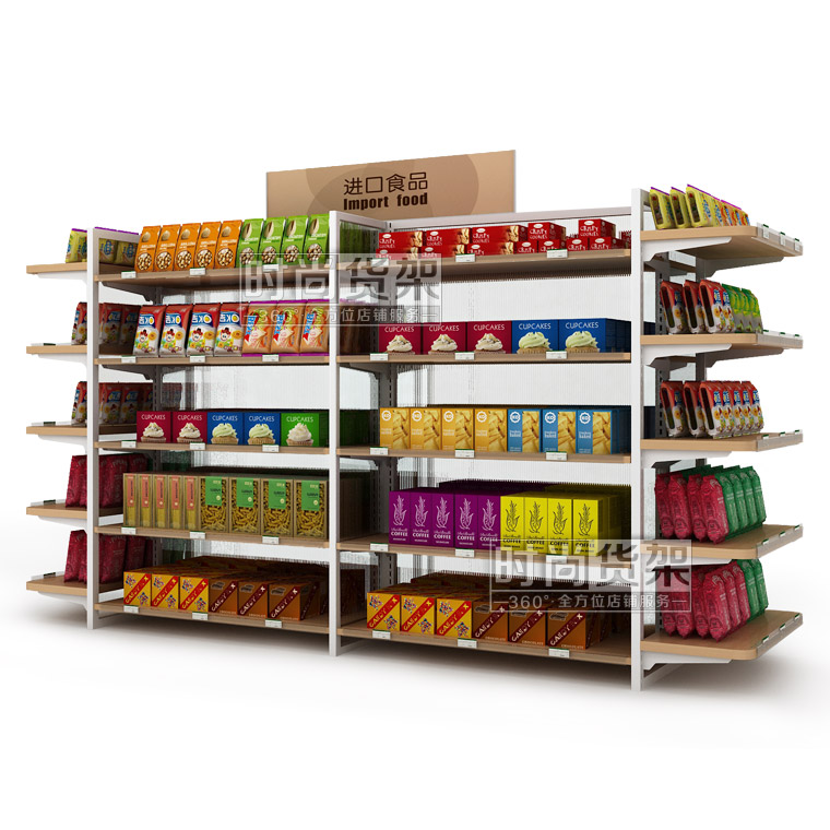 【描述】便利超市食品貨架整體框架由優質冷軋鋼材精制而成,使用壽命長久,承重超乎想象。高檔環保的木質層板,更具時尚感,再配合透光性強的陽光背板設計,有效增強商品展示效果。