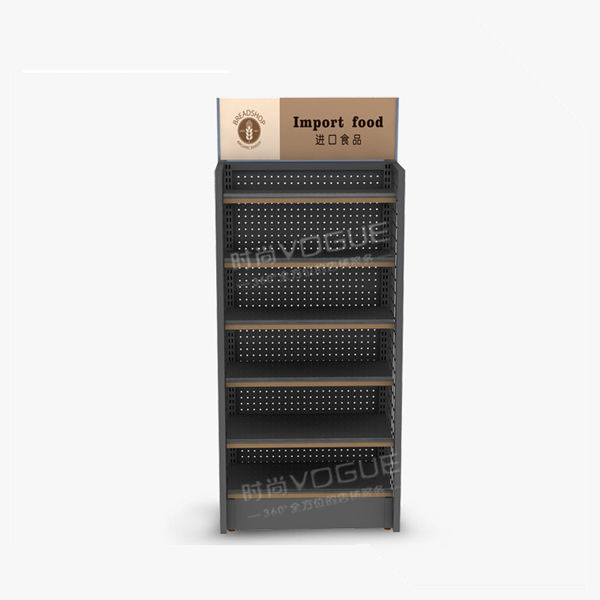 【描述】此款便利店貨架是時尚貨架為便利店食品展示區設計生產的一款洞洞板樣式的便利店單面貨架。該貨架采用優質冷軋鋼,采用先進的一體成型工藝制作,全程無焊點,承重力強,質量可靠。采用組合式設計、托壁可以直接卡在立柱上,安裝方便、造型簡約,經久耐用,是一款非常適合社區便利店使用的便利店貨架。此款孔背板端頭架可以和孔背板雙面貨架組合成一套便利店孔背板中島貨架。