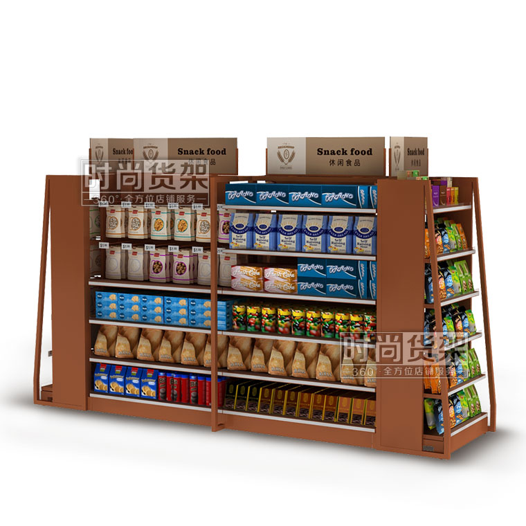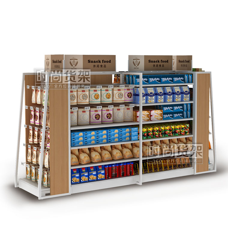 本款產品是時尚貨架為店鋪食品區設計生產的一款鋼木結構的便利店食品貨架,如需了解便利店靠墻貨架,請點擊:http://m.imgkd.cn/store/dshj/72.html ,更多詳情請咨詢客服!