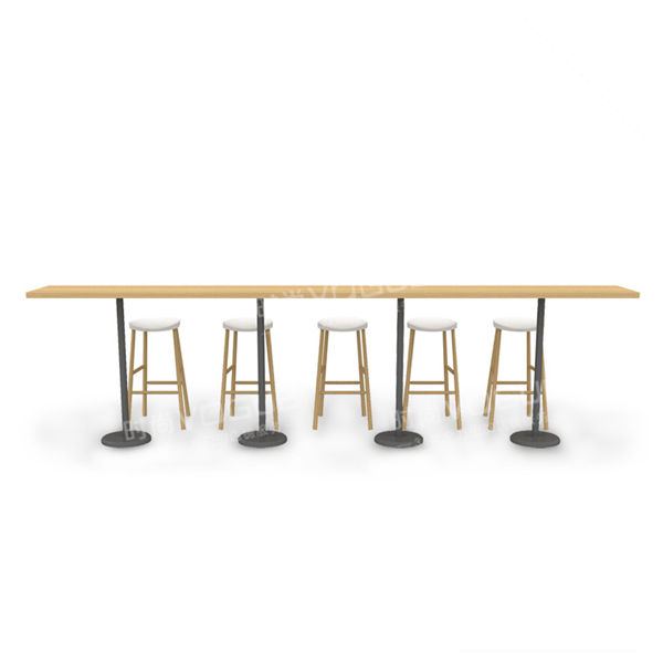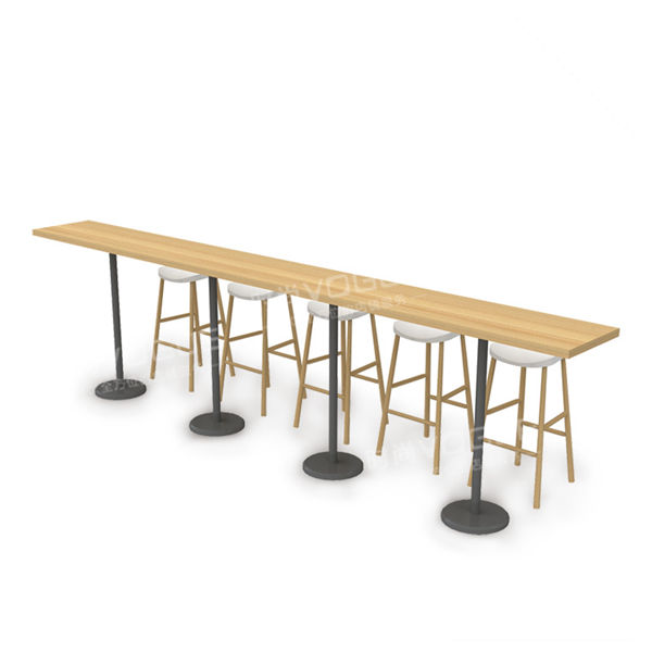 【描述】此款便利店休閑吧臺(tái)桌椅配色清新,色澤明亮,非常有效的提升店鋪形象;吧臺(tái)臺(tái)面采用優(yōu)質(zhì)環(huán)保木材,無(wú)甲醛傷害,經(jīng)過(guò)多道精密工序,自然的木質(zhì)紋理美觀清新,同時(shí)具有防潮、耐高溫的特點(diǎn),讓使用壽命更久;烤漆剛制立腳,灰色的配色具有時(shí)尚感,工藝精湛,具有耐磨防刮的效果;吧椅線條流暢,根據(jù)人體工程學(xué)原理設(shè)計(jì)了踏腳橫梁,使用起來(lái)更為舒適??煞胖糜诒憷甑鹊拇扒?,即美觀通透,也有吸引來(lái)往人群入店消費(fèi)的作用。