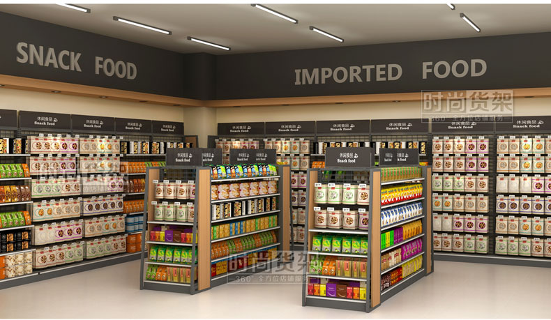 此款超市貨架是深圳貨架廠【時尚貨架】專為超市食品區域打造的一款通透性更強的網背板零食貨架。更多超市貨架可點擊http://m.imgkd.cn/supermarket/spzsq/,如需采購超市貨架,請咨詢客服!